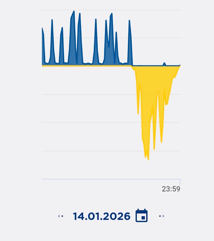 Donc on rigole bien … il n’y a que du soleil le soir du 14 janvier et une pointe de 4.48kW le 13 janvier à 20h45!